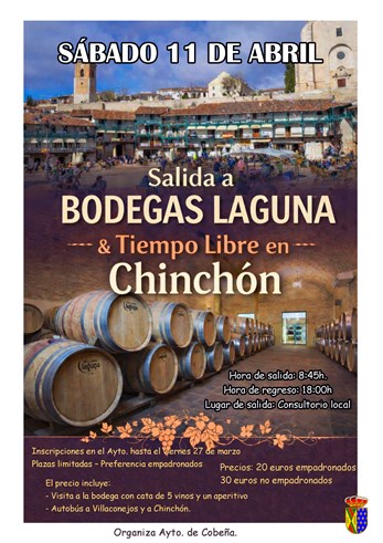 El sábado 11 de abril de 2026, visitaremos la localidad de Chinchón y visitaremos las Bodegas Laguna.